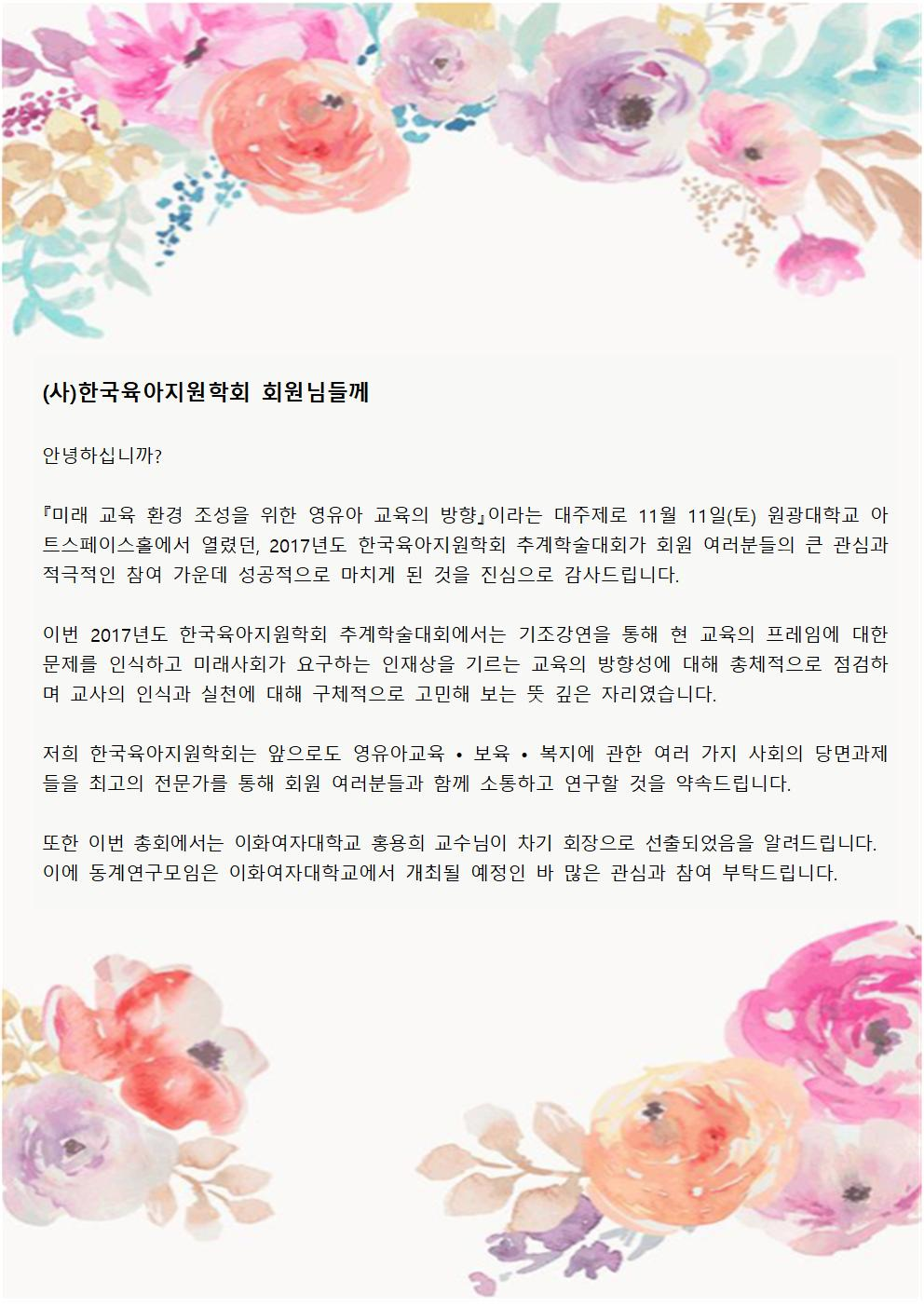 2017년 사단법인 한국육아지원학회 추계학술대회 감사의 글