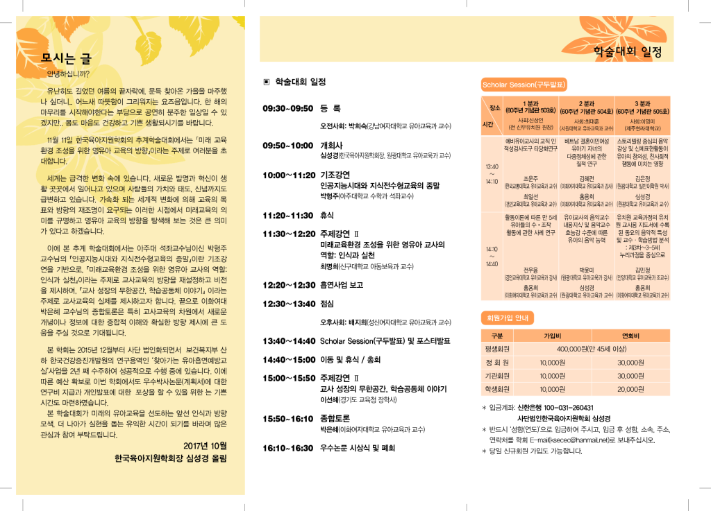 2017년 한국육아지원학회 추계학술대회 참가등록비 |