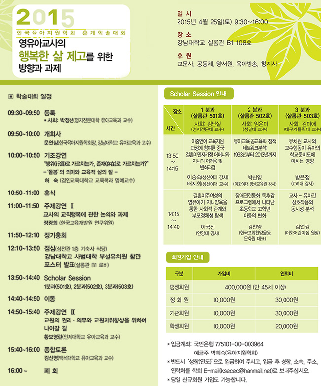 2015년도 한국육아지원학회 춘계학술대회를 『영유아교사의 행복한 삶 제고를 위한 방향과 과제』