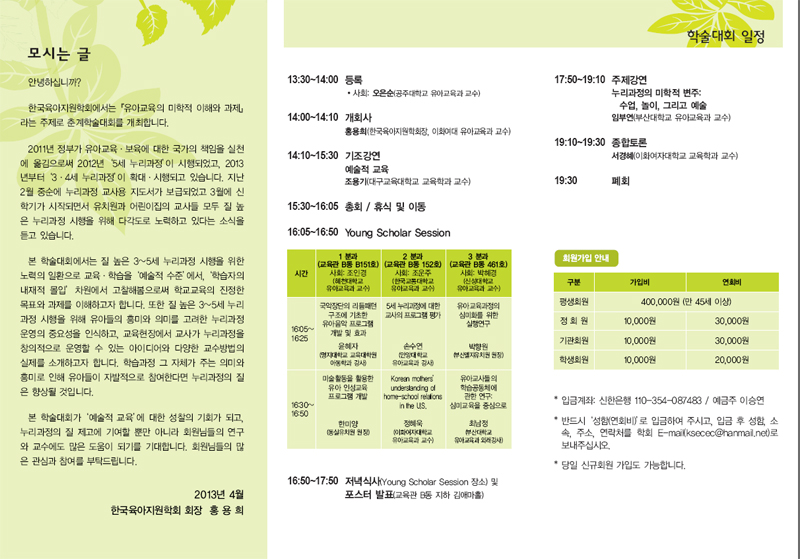 본 학술대회가 ‘예술적 교육’에 대한 성찰의 기회가 되고, 누리과정의 질 제고에 기여할 뿐만 아니라